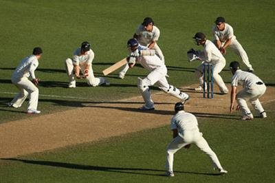 In scenes a bit like the one pictured the Erratics strove in vain on Sunday evening to take Broadclyst's final wicket to win a dramatic timed game. Chasing the Erratics' hard-grafted total of 180-odd our hosts looked on course at 70ish for 1, until our strong bowling unit ripped through their line up to leave them teetering at 90-odd for 9 - but it wasn't to be our day as sometime (and now possibly former) Erratic Rob Scott blocked heroically to salvage a draw for his side. Read Phil Power's report